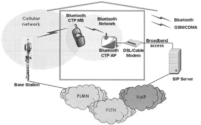 摘要 介紹了藍牙CTP(Cordless Telephony Profile)應(yīng)用模型,并闡述它在FMC(Fixed Mobile Convergence)接入網(wǎng)中的應(yīng)用:PSTN接入和VoIP接入。