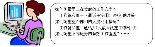 某經(jīng)理在第一周的會(huì)上和全體班長(zhǎng)說(shuō):接通率是最重要的指標(biāo),接都接不通,客戶服務(wù)怎么能提升呢?大家要關(guān)注自己團(tuán)隊(duì)的平均通話時(shí)長(zhǎng)和工作飽和度。