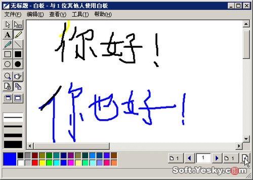 Netmeeting界面下方有四個按鈕,分別對應(yīng)了“共享”、“聊天”、“白板”和“傳送文件”四項主要功能(這四項功能需要在會議屬性中啟用,否則在會議中處于不可用狀態(tài))。