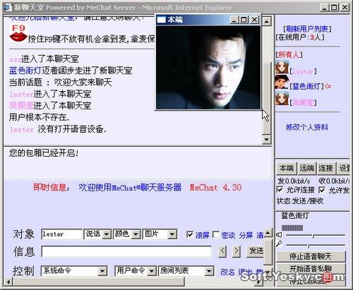 MeChat是由廣州和韻計算機有限公司開發(fā)的視頻聊天服務(wù)器。(點這里下載)與一般的采用ASP或CGI的語音聊天室不同,Mechat內(nèi)核由C