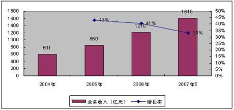 賽迪顧問預測2007年底,我國增值電信業(yè)務市場收入有望超過1600億元,增速高達33%,移動增值業(yè)務收入規(guī)模將達980億元左右,占比高達61.25%。2007年增值電信業(yè)務經(jīng)營企業(yè)的數(shù)量將會出現(xiàn)負增長,量的下降帶來質(zhì)的提升,表明增值電信業(yè)市場已經(jīng)趨于良性發(fā)展。