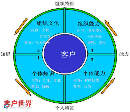 在訪談中發(fā)現(xiàn),淮安中心建立了以能力為核心的管理體系,該體系給了我很多的啟發(fā)。該體系明確了整個(gè)中心的管理思維、管理方法和管理對(duì)象。同時(shí),該體系通過(guò)圖示的方法進(jìn)行傳播,保證了整個(gè)中心人員對(duì)中心管理思維、管理方法和管理對(duì)象理解的一致性,進(jìn)而保證了整個(gè)組織成員行動(dòng)的一致。其組織能力循環(huán)圖如下: