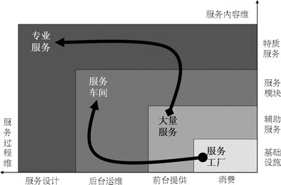 表1中以“★”標(biāo)識(shí)的服務(wù)基本上都是電信運(yùn)營企業(yè)開展移動(dòng)信息化后向客戶提供的服務(wù),可以明顯看出,更高的顧客參與度、更多的顧客化是這些服務(wù)的共同特點(diǎn),所以,移動(dòng)信息化運(yùn)營的就是由服務(wù)工廠向服務(wù)車間轉(zhuǎn)型、由大量服務(wù)向?qū)I(yè)服務(wù)轉(zhuǎn)型。