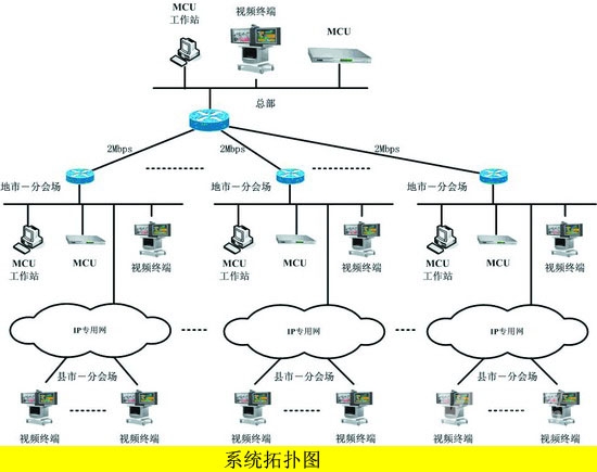 在視頻會議中,要考慮到,當(dāng)集團召開全體會議時,可以通過MCU級聯(lián)的方式,方便地與總部實現(xiàn)交互式會議。同時,應(yīng)與VoIP語音、前方工作隊監(jiān)控系統(tǒng)融合在一起,達到整體協(xié)調(diào)高效的工作。