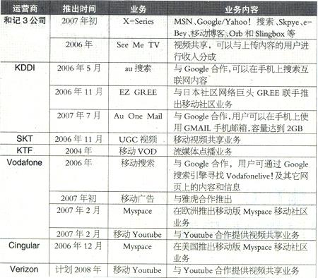 全球主要移動(dòng)運(yùn)營商推出的新型移動(dòng)互聯(lián)網(wǎng)業(yè)務(wù)