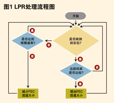 不同于大多數(shù)差錯(cuò)隱消或規(guī)避算法只介入接收丟包信息系統(tǒng)的方式,LPR會(huì)介入到視頻通話中的各級(jí)系統(tǒng)中,通過(guò)臨時(shí)將一部分通話帶寬分配給一個(gè)數(shù)據(jù)通道,從而用于發(fā)送FEC數(shù)據(jù)給接收系統(tǒng)來(lái)發(fā)揮作用。在網(wǎng)絡(luò)傳輸發(fā)生丟包時(shí),通過(guò)上述的一個(gè)循環(huán)處理,LPR就會(huì)增加或減少FEC數(shù)據(jù)通道的大小,直到找到必須分配給FEC數(shù)據(jù)通道的最小帶寬,從而使得接收系統(tǒng)能夠恢復(fù)所有丟失的數(shù)據(jù)包。