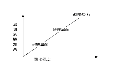 為了確保培訓(xùn)實施效果能達(dá)到預(yù)期的效果及水平即達(dá)到預(yù)期的認(rèn)識水平,來自于管理層的執(zhí)行力必不可少,任何一項培訓(xùn)工作如果不能自下而下的進行“洗腦”即同化過程,很難保證培訓(xùn)效果。簡言之,我們需要從戰(zhàn)略角度到管理層面直到實施層面的同化過程。