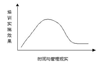 從圖一我們得知,在培訓(xùn)實施認(rèn)識之初,企業(yè)對于培訓(xùn)需求的同化程度越高,培訓(xùn)實施效果就會越好,反之若是我們的同化層面只停留在實施層面,得不到管理層、戰(zhàn)略層的同化支持自然培訓(xùn)效果不能長久,只能達(dá)到一個短時間的定向認(rèn)識,隨著時間與現(xiàn)實的變化,培訓(xùn)效果則會一蹶不振。(見圖二)