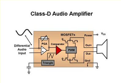 在音頻解決方案中進行折衷與音頻處理性能、音頻輸出功率、熱耗散和整體的功耗有關(guān)。傳統(tǒng)的音頻方案由兩到三個受AB類音頻功率放大器驅(qū)動的揚聲器構(gòu)成。然而,相對于它的整個音頻輸出而言,AB類放大器的工作固有地生成大量的熱。這些積聚起來的高溫因為需要大的散熱片來散發(fā)熱量,所以,在大多數(shù)薄形狀因子的平面電視中禁止采用AB類放大器。為了解決這個問題,業(yè)界采用了D類放大器技術(shù)(圖3)。目前,輸出場效應(yīng)三極管(FET)可以在截止區(qū)與飽和區(qū)之間切換,從而提供比AB類放大器更高的效率,F(xiàn)有的音頻解決方案容許你完全利用數(shù)字信號路徑。這不僅僅最大化音頻效率,而且,它們也提供有效的處理和大于110dB的信噪比(SNR)。