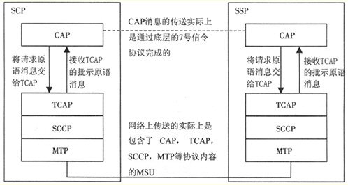移動(dòng)智能網(wǎng)應(yīng)用部分(CAP)是遠(yuǎn)程操作服務(wù)單元(ROSE),ROSE規(guī)程包括在TCAP成份子層中,并作為單位數(shù)據(jù)(UDT)放在SCCP中傳送。我國(guó)CAP是建立在以TCAP和SCCP為基礎(chǔ)的No.7信令網(wǎng)傳送的,CAP受限于SSP-SCP、SCP-IP之間的接口規(guī)范。