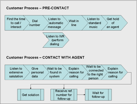 首先第一步,客戶相關(guān)的業(yè)務(wù)流程必須從客戶的角度而非企業(yè)角度來定義。這和“自內(nèi)而外思想”無關(guān),我們要做的也不是顯示我們在企業(yè)內(nèi)組織活動的能力有多強(qiáng)而是了解客戶在與我們互動時的感受并由此展開一系列行動。客戶并不知道——也不關(guān)心——企業(yè)用了哪個尖端的CRM軟件,呼叫中心代理的工作環(huán)境如何,文檔掃描過程是否是自動化的。客戶關(guān)心的是那些在流程優(yōu)化一開始就被遺忘的很基本的東西,比如說簡單快速地找到一個應(yīng)該傾聽她們問題的人,因?yàn)槲覀兪钦驹谄髽I(yè)的位置在看問題。