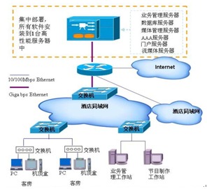 鄂州酒店級IPTV系統(tǒng)采用運營平臺集中部署,中心運營平臺涵蓋了中心媒體服務器,內容管理服務器,門戶服務器,業(yè)務管理服務器,數(shù)據(jù)庫服務器,AAA服務器,網(wǎng)管服務器、視頻編碼器、流媒體服務器等,后期根據(jù)客戶量的增加,可以將多媒體服務器獨立出來進行分布式的二層部署。