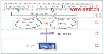 這種模式的合作點主要在接入層面,以提供雙模機頂盒為主要方法。固網(wǎng)公司和廣電發(fā)揮各自資源優(yōu)勢進行合作。廣電節(jié)目傳送由廣電負責,同網(wǎng)提供寬帶增值服務,兩者分業(yè)經(jīng)營,地位平等。