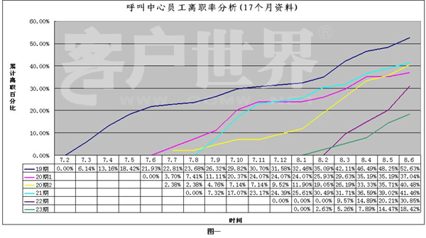 員工流失率控制,在行業(yè)內(nèi)困惑著不少中心領(lǐng)導(dǎo)。業(yè)內(nèi)專家集中精力,采取各種措施,試圖減少流失率對服務(wù)中心成本的影響。為此,本項目組對某客戶服務(wù)中心員工5期新員工進(jìn)行了17個月的數(shù)據(jù)采集、分析,涉及近200名離職員工的信息分析。從時間變量角度,對新員工內(nèi)心體驗進(jìn)行闡述,并分析此考察期間,員工負(fù)性情緒、工作事件、經(jīng)歷體驗與促使員工離職行為之間的關(guān)系,建立針對問題的性質(zhì),制定干預(yù)策略。本設(shè)想建立在針對員工培訓(xùn)體系進(jìn)行優(yōu)化,減少已發(fā)現(xiàn)的新員工離職原因?qū)θw員工的影響,從而實際的減少員工流失、工作低績效現(xiàn)象,達(dá)到提高組織績效的目的。