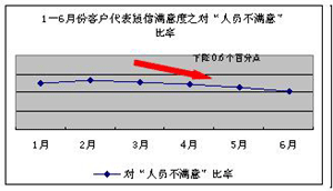短信滿意度作為實(shí)時(shí)的客戶服務(wù)評(píng)價(jià)手段,“非常滿意”指標(biāo)體現(xiàn)出在服務(wù)過程中一線客戶代表與客戶溝通的愉悅度、忠誠(chéng)度。隨著“非常滿意”及“對(duì)人員不滿意”滿意度指標(biāo)的改善,一定程度上說明一線客戶代表的服務(wù)狀態(tài)得到了有效的改善。
