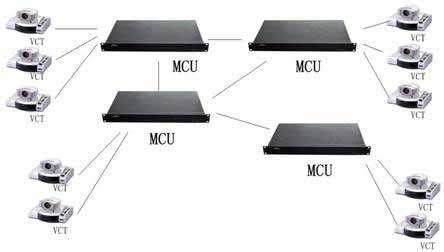 多MCU連接星型組網結構見圖所示,其中VCT是視頻會議終端VideoConferenceTerminal的縮寫