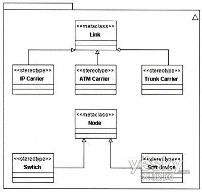 該擴展針對Link和Node和兩個元類增加了NGN中關(guān)于承載和節(jié)點的定型?梢愿鶕(jù)需要對該模型作進一步擴展,如可以增加關(guān)于接入網(wǎng)承載的定型等。