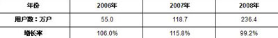 2009年3月5日,中國權(quán)威ICT研究與管理咨詢機構(gòu)賽迪顧問股份有限公司(股票代碼:HK8235)在“2009中國消費電子市場年會”上發(fā)布《2008-2009年中國IPTV產(chǎn)業(yè)發(fā)展研究年度報告》顯示:2008年,IPTV產(chǎn)業(yè)在政策的推動下,呈現(xiàn)持續(xù)發(fā)展,用戶數(shù)達236.4萬戶。IPTV的運營實現(xiàn)了由粗放到精細的轉(zhuǎn)變,運營商一方面關(guān)注新用戶的拓展,各類免費促銷、捆綁促銷帶動了用戶數(shù)的增長;另一方面,關(guān)注對已有用戶使用感受的改進。內(nèi)容點播與視頻時移正逐步成為用戶核心訴求。央視國際、南方傳媒、國際廣播電臺也紛紛與國內(nèi)各地方電信協(xié)商合作。但相對于高額的IPTV設(shè)備費用,IPTV業(yè)務的收入十分有限。有效地商業(yè)模式尚未形成。2008年,IPTV仍依靠低價促銷拓展市場。