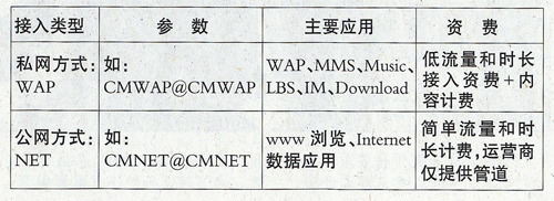 目前,運營商采用兩種接入方式(WAP和NET)接入移動互聯(lián)網,如表所示:
