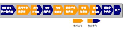 3G時代的移動通信產(chǎn)業(yè)鏈由技術(shù)平臺提供商、設(shè)備提供商、應(yīng)用平臺提供商、應(yīng)用開發(fā)商、內(nèi)容提供商、內(nèi)容集成商、移動平臺提供商、移動運營商、終端提供商、渠道合作伙伴等市場主體構(gòu)成。移動通信產(chǎn)業(yè)鏈?zhǔn)且粋整體功能鏈狀網(wǎng)絡(luò),構(gòu)成產(chǎn)業(yè)鏈的市場主體隨著移動通信技術(shù)、市場競爭情況以及用戶需求的變化而變化。移動運營商在產(chǎn)業(yè)鏈上發(fā)揮的作用也是不同的,每當(dāng)產(chǎn)業(yè)鏈發(fā)生變化時,移動運營商就需要重新進行角色定位。