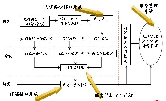 必須實現(xiàn)接口開放,從2004年到現(xiàn)在做了這么長時間,解決機頂盒和系統(tǒng)的標準化問題,全國的機頂盒都是一個接口。現(xiàn)在初步解決了接口開放的問題,增值業(yè)務添加接口可以實現(xiàn)局部的標準化和開放,但是應該說大量的接口還是封閉,如果要走到和行業(yè)深度結合階段,這個接口要進一步開放,而不是打造成全封閉的系統(tǒng)。