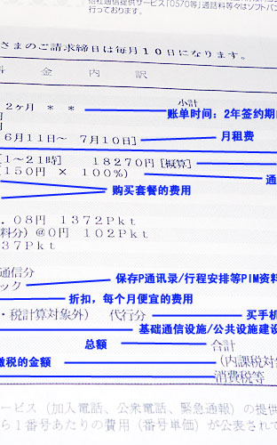 到底在購(gòu)買各種套餐之后,用戶每個(gè)月使用多少錢呢?下面是一份普通的日本手機(jī)用戶每個(gè)月收到的賬單,通過(guò)這份賬單我們清晰看出3G資費(fèi)的構(gòu)成。在這里,我們清晰看到?jīng)]有漫游費(fèi),如果沒(méi)有折扣,該用戶至少需要付近3萬(wàn)日元的費(fèi)用,實(shí)際上,最后用戶需要繳納的費(fèi)用是6064日元,其中還包含了購(gòu)買新款手機(jī)3380日元的費(fèi)用,實(shí)際上產(chǎn)生的話費(fèi)是2660日元。