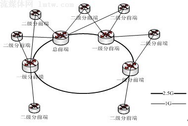 某廣電現(xiàn)有網(wǎng)絡(luò)環(huán)境如下圖所示,總前端及其他一級分前端處于骨干光纖環(huán)網(wǎng)上,另有若干個二級分前端分別通過光纖雙上聯(lián)至骨干環(huán)網(wǎng)上的總前端或一級分前端中的兩個物理節(jié)點(diǎn)。所有物理節(jié)點(diǎn)均帶有一定數(shù)量的終端用戶。