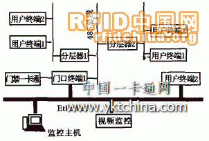 系統(tǒng)采用了兩套獨(dú)立的網(wǎng)絡(luò)系統(tǒng),第一套是基于485總線半雙工網(wǎng)絡(luò)系統(tǒng),第二套是基于以太網(wǎng)的局域網(wǎng)。基于485總線半雙工網(wǎng)絡(luò)系統(tǒng)用以連接門口終端、分層器和用戶終端,這主要是從成本上考慮。由于這三部分交換的信息比較少,數(shù)據(jù)交換的速度要求也不是很高而且實(shí)現(xiàn)比較簡單,故采用了這種網(wǎng)絡(luò)系統(tǒng)。
