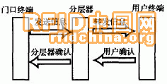 由門口終端發(fā)送一幀信息給分層器,分層器接收到以后,被呼叫的分層器將信息分發(fā)給本層所有的用戶終端,并等待用戶終端的確認(rèn)。被呼叫的用戶終端收到信息后,立即發(fā)送確認(rèn)信息給分層器,分層器收到以后,給門口終端發(fā)送確認(rèn)信息。門口終端收到分層器的確認(rèn)后,打開攝像頭和音頻麥克風(fēng),此時(shí)雙方可以進(jìn)行對(duì)話。
