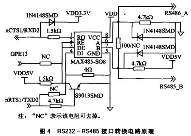 圖4中RS485的數(shù)據(jù)流方向由GPE13口的電平進行控制。