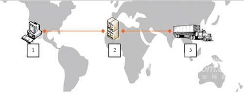 “1”代表客戶(hù)端,可以是PC,PDA等,坐落在美洲;“2”代表運(yùn)行在“云”服務(wù)器上 的SaaS或非SaaS信息系統(tǒng),坐落在非洲;“3”代表末端,可以是任何智能物件,坐落在亞洲。