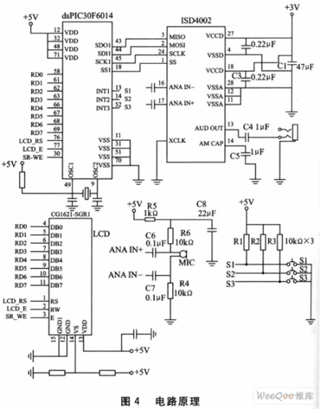 介紹dsPIc數(shù)字信號控制器以廈ISD4002語音芯片的功能特點;特別介紹dsPIC的SPl庫函數(shù)的功能及使用,并給出一種簡單的語音錄放電路。具有低成本、易使用等特點,有較高的實用價值。