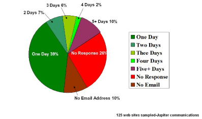 該報告進(jìn)一步總結(jié)到,60%的網(wǎng)站客戶希望更多互動但許多電子商務(wù)企業(yè)無法回應(yīng)電子郵件且不能提供足夠的電話支持。也有很多電子商務(wù)企業(yè)提供電子郵件支持,比如說etoys,但對于如潮水般洶涌而來的電子郵件聯(lián)絡(luò)他們顯然沒有什么準(zhǔn)備以至于處理結(jié)果符合客戶預(yù)期的郵件少之又少。如果處理的好