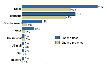。這個報告可能有些誤導(dǎo)傾向,因為它顯示41%的受調(diào)者偏愛電話聯(lián)絡(luò),只有3%選擇聊天。如果將調(diào)研范圍局限在電子零售行業(yè)那么選擇聊天的人數(shù)將大幅上升。事實上,網(wǎng)站合作供應(yīng)商以及eCare