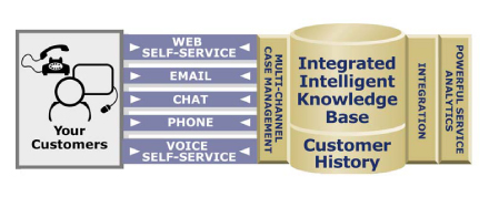 Technologies”是一家非常著名的多接觸點(diǎn)呼叫中心供應(yīng)商,這家公司建議采用“通用事故”追蹤機(jī)制,它強(qiáng)調(diào)報表和歷史紀(jì)錄必須作為任何一個多接觸點(diǎn)聯(lián)絡(luò)中心不可或缺的組成部分!癛ightnow”提供的以下插圖很清楚地向我們展示了多渠道知識庫集成是如何被強(qiáng)制執(zhí)行的。