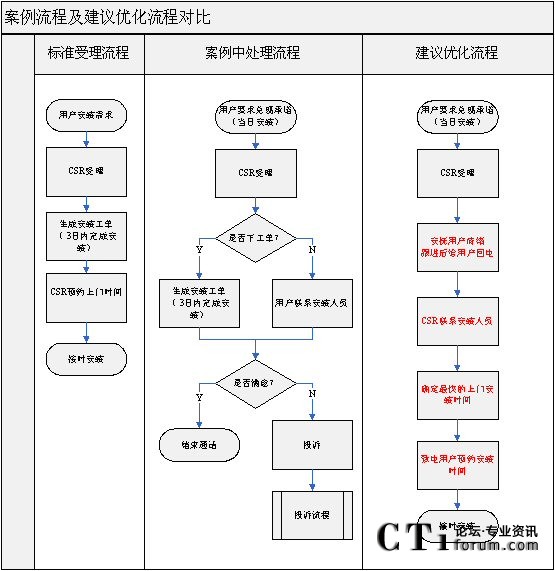 通過(guò)對(duì)比,很明顯后者減少了流程中的關(guān)鍵角色,提高了流程的執(zhí)行效率。CSR直接為用戶提供了“一站式服務(wù)”,用戶只需要通過(guò)一個(gè)電話便能解決問(wèn)題,而至于CSR與安裝人員的工作協(xié)調(diào),完全不需要用戶去介入。