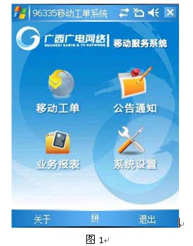 移動工單系統(tǒng)是數(shù)字電視客戶呼叫中心平臺系統(tǒng)的延伸,它結合最新的網(wǎng)絡移動技術,實現(xiàn)數(shù)字電視服務工單分派業(yè)務的自動流轉和實時流轉,各地市維護站的服務工作人員通過智能手機終端,實時獲取工作任務、計劃安排,進行業(yè)務處理,通過移動網(wǎng)絡查詢客戶信息、查詢用戶產(chǎn)品訂購資料,上報處理結果和用戶反饋信息,通過移動網(wǎng)絡提交到管理部門,管理層能及時的掌握服務進展情況,并能隨時做出決策和指揮,真正實現(xiàn)對用戶最快速、有效的服務需求響應,保證了服務質量和用戶滿意度,提升了數(shù)字電視的服務水平與服務檔次。其界面如圖1所示。