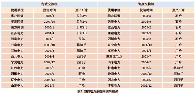 通過對目前國內(nèi)電力系統(tǒng)網(wǎng)省一級的用戶使用交換機設(shè)備品牌進行電話調(diào)研統(tǒng)計,從整體上更能體現(xiàn)交換設(shè)備技術(shù)發(fā)展走向,為軟交換應(yīng)用的可行性評估提供可靠的數(shù)據(jù)。表2為重點調(diào)研的匯總結(jié)果。