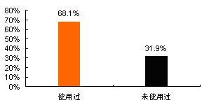 調(diào)查數(shù)據(jù)顯示,在所訪問6個城市的手機(jī)用戶中,已使用過數(shù)據(jù)增值業(yè)務(wù)(包括已使用過短信業(yè)務(wù)或已使用過其它業(yè)務(wù)的)的用戶占總體的68.1%,而還未使用過數(shù)據(jù)增值業(yè)務(wù)的占總體的31.9%。如下圖所示:
