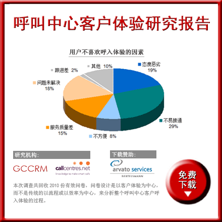 隨著呼叫中心服務(wù)在中國市場的蓬勃發(fā)展,每個(gè)人也都直接或間接的以某種形式成為呼叫中心的使用者,而這些呼叫中心服務(wù)提供商所提供的服務(wù)體驗(yàn)對(duì)其品牌的塑造至關(guān)重要。為更好了解呼叫中心用戶的客戶體驗(yàn),從而有助于改善并優(yōu)化用戶的呼叫中心體驗(yàn),我們組織了“呼叫中心客戶體驗(yàn)調(diào)查——中國大陸”,本次調(diào)查由澳大利亞的callcentres.net 和GCCRM共同組織,旨在以自然時(shí)間為序,從體驗(yàn)為中心的角度展現(xiàn)呼叫中心的客戶體驗(yàn),而非傳統(tǒng)的以流程或效率為中心。
