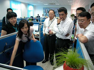 6月11日下午,省公司總經(jīng)理廖康、副總經(jīng)理鄭成渝一行前往呼叫中心視察,在認(rèn)真聽取了實(shí)業(yè)公司郭志豪總經(jīng)理和相關(guān)負(fù)責(zé)人對呼叫中心的運(yùn)營模式、業(yè)務(wù)流程及管理結(jié)構(gòu)等情況的詳細(xì)介紹后,廖總對呼叫中心下一步的發(fā)展提出了三個方面的建議和要求。一是要準(zhǔn)確把握呼叫中心面向市場、面向社會,成為全省話務(wù)服務(wù)商的市場定位;二是要與主業(yè)公司多聯(lián)系、多溝通,建立與主業(yè)業(yè)務(wù)相銜接的業(yè)務(wù)流程,搭建支撐主業(yè)業(yè)務(wù)的平臺;三是要注重企業(yè)品牌的創(chuàng)建工作,下功夫?qū)艚兄行牡钠髽I(yè)品牌進(jìn)行塑造。