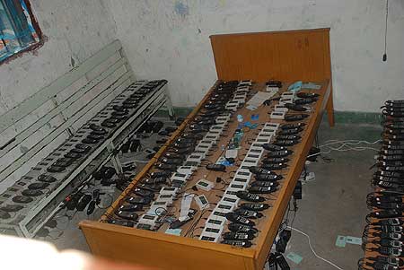 辦案民警在這兩個窩點一共繳獲犯罪嫌疑人用于作案的手機近400部。