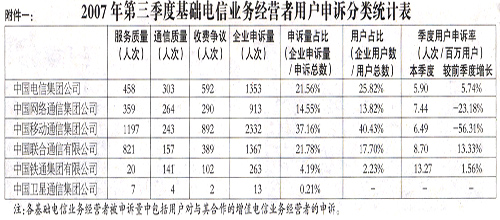 為加強社會監(jiān)督,推進電信服務質(zhì)量持續(xù)改善,根據(jù)《中華人民共和國電信條例》相關(guān)規(guī)定,現(xiàn)將2007年第三季度電信服務質(zhì)量有關(guān)情況公布如下。