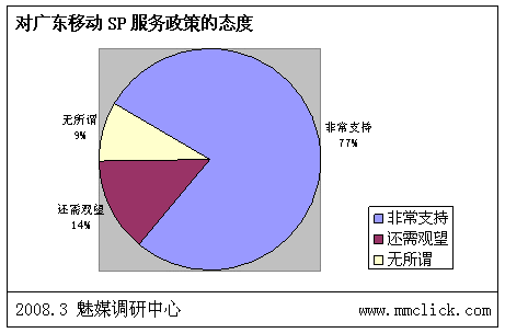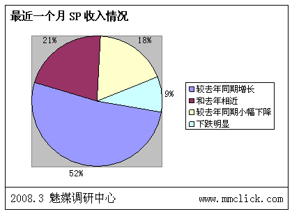 最近公布的空中網(wǎng)財(cái)務(wù)報(bào)表的數(shù)據(jù)顯示空中網(wǎng)總收入環(huán)比增長(zhǎng),結(jié)合之前廣東移動(dòng)推出:廣東移動(dòng)向重服務(wù)轉(zhuǎn)變 首推“6+1”服務(wù),SP行業(yè)可以說(shuō)是暖風(fēng)頻吹。魅媒無(wú)線行業(yè)調(diào)研中心隨機(jī)從3月3日到3月5日隨記電話采訪50多家全網(wǎng)以及廣東省網(wǎng)SP公司相關(guān)負(fù)責(zé)人,對(duì)最近的SP行業(yè)的政策調(diào)整進(jìn)行調(diào)查,有以下的數(shù)據(jù):