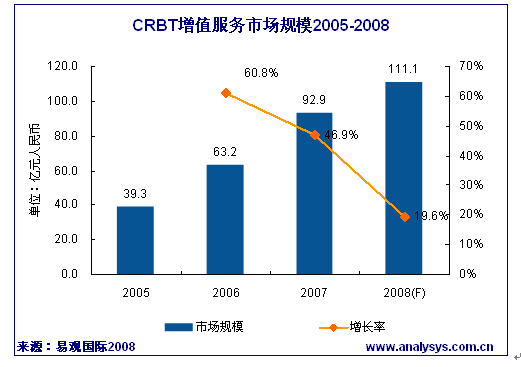 易觀國(guó)際:07年中國(guó)彩鈴市場(chǎng)規(guī)模達(dá)92.9億
