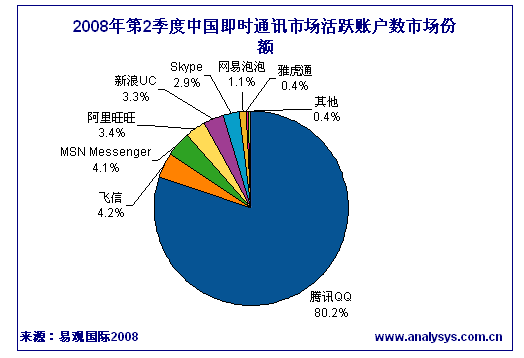 2008年第2季度中國即時(shí)通訊活躍帳戶數(shù)達(dá)4.26億