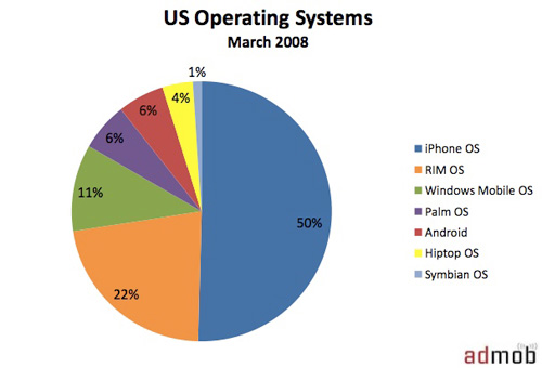 據(jù)國外媒體報道,手機廣告公司AdMob今天公布3月份的業(yè)務績效報告稱,Android在手機廣告市場上的占有率正穩(wěn)步增長,目前在AdMob所追蹤的所有手機廣告索閱中占6%份額,與PalmOS并駕齊驅(qū)。
