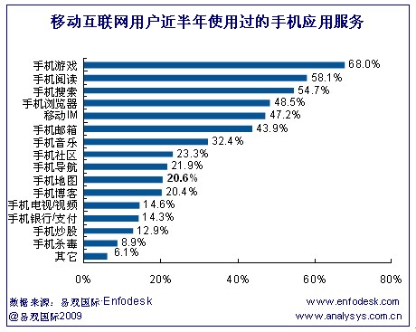 2009年手機游戲、手機閱讀成為用戶最受歡迎的手機應(yīng)用服務(wù)