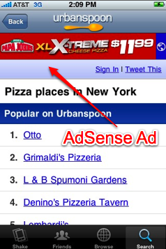 AdSense旋風(fēng)已經(jīng)刮到了iPhone和Android應(yīng)用程序里,目前iPhone的UrbanSpoon和Android的Shazam都已經(jīng)開始集成Mobile AdSense,根據(jù)當(dāng)前應(yīng)用所顯示的內(nèi)容、你所在的地理位置、應(yīng)用的類別和關(guān)鍵字來匹配最合適的廣告。目前Mobile AdSense還在beta測試,只支持iPhone和Android應(yīng)用程序,參加beta測試的應(yīng)用程序要求每天至少要有10萬次的廣告展示機(jī)會,并在4周內(nèi)將內(nèi)置Mobile AdSense的應(yīng)用程序更新上線。