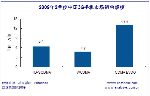 2009年第2季度中國(guó)3G手機(jī)市場(chǎng)整體銷量達(dá)到24.2萬